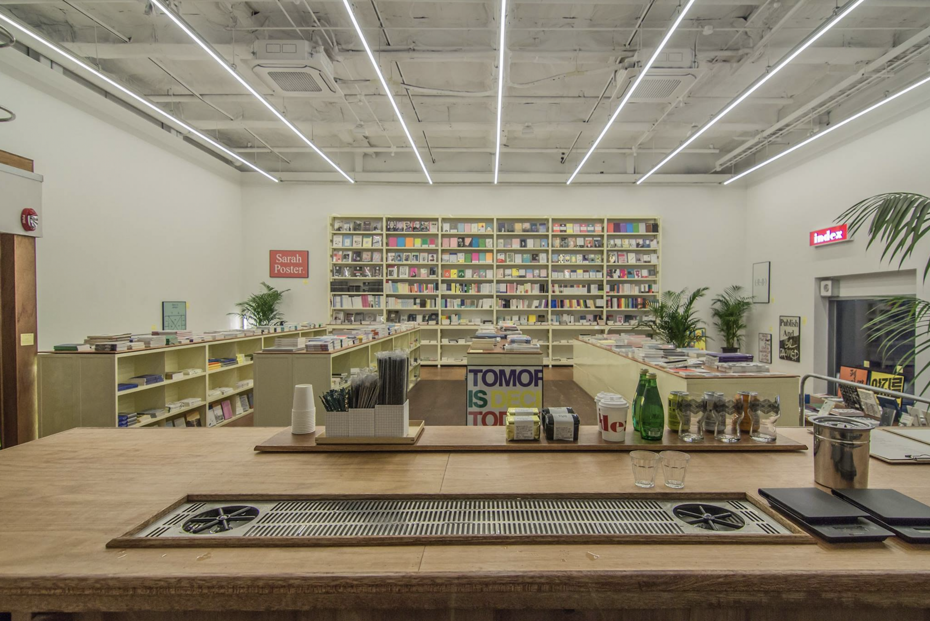Designed space and furniture for an independent bookstore 'Index' jointly operated by graphic designers and editors.